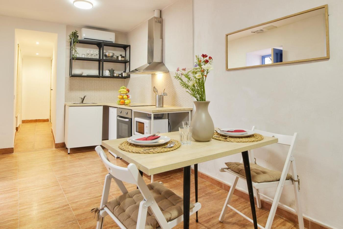 One-Bedroom Apartment. This air-conditioned apartment comprises 1 living room, 1 separate bedroom and 1 bathroom with a bath or a shower. Meals can be prepared in the kitchen, which comes with a stovetop, a refrigerator, an oven and a microwave. Featuring a terrace with city views, this apartment also provides a washing machine and a flat-screen TV. The unit offers 2 beds.