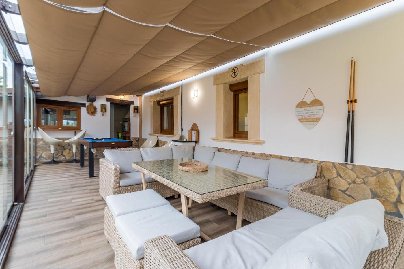 The spacious country house is equipped with 4 bedrooms, 3 bathrooms, bed linen, towels, a TV, a fully equipped kitchen, and a balcony with mountain views. For added privacy, the accommodation features a private entrance.
